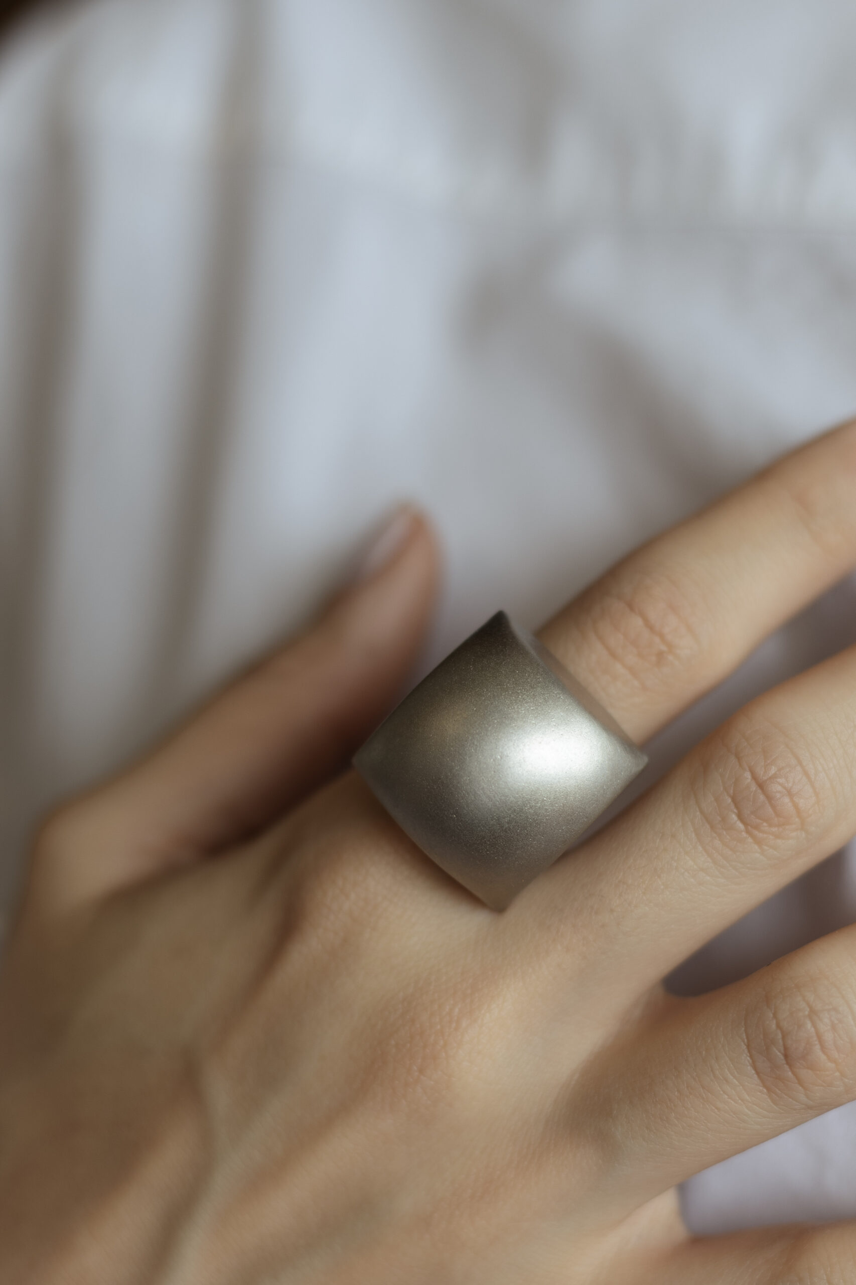 Anel quadrado de metal ouro envelhecido. Tamanho ajustável.