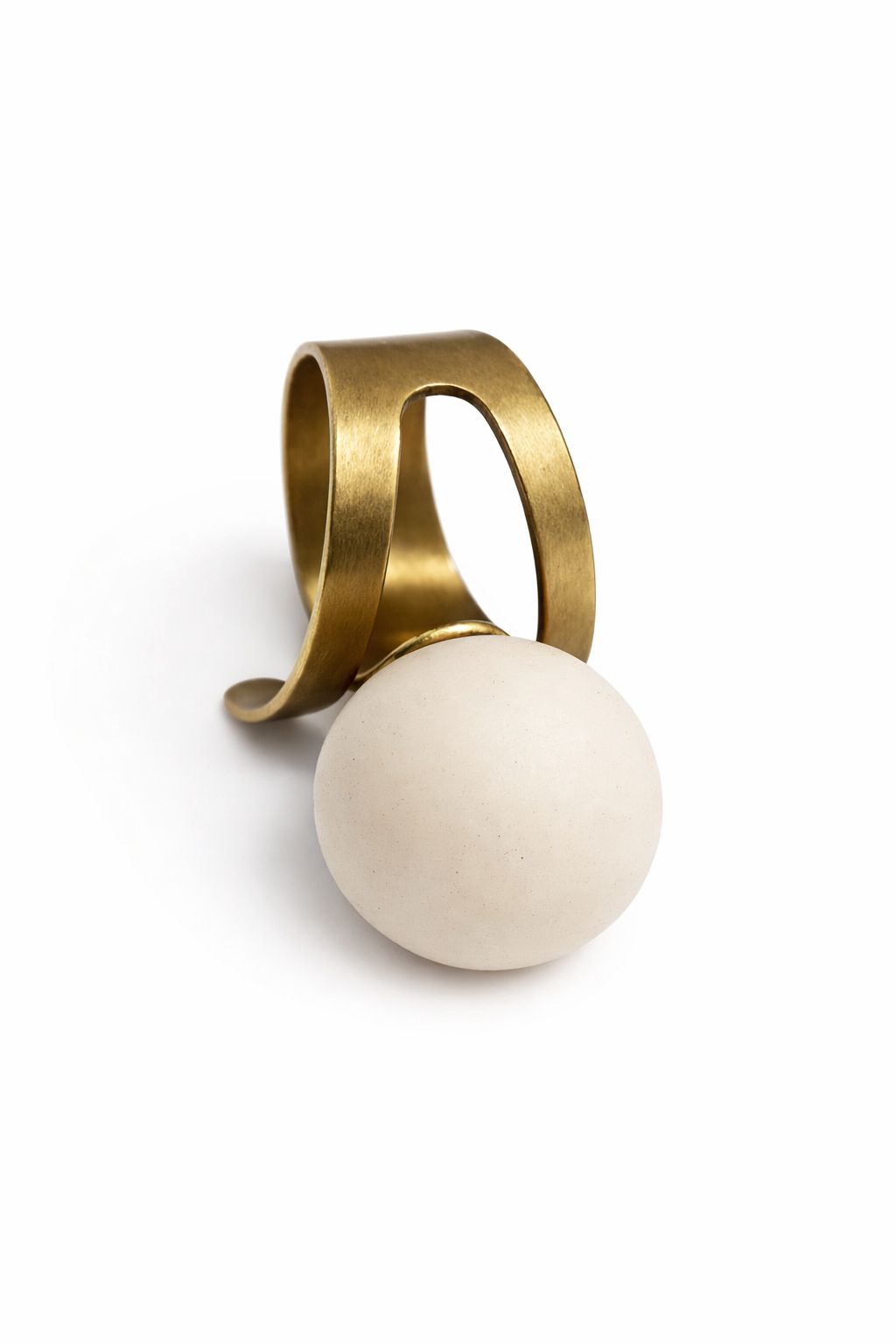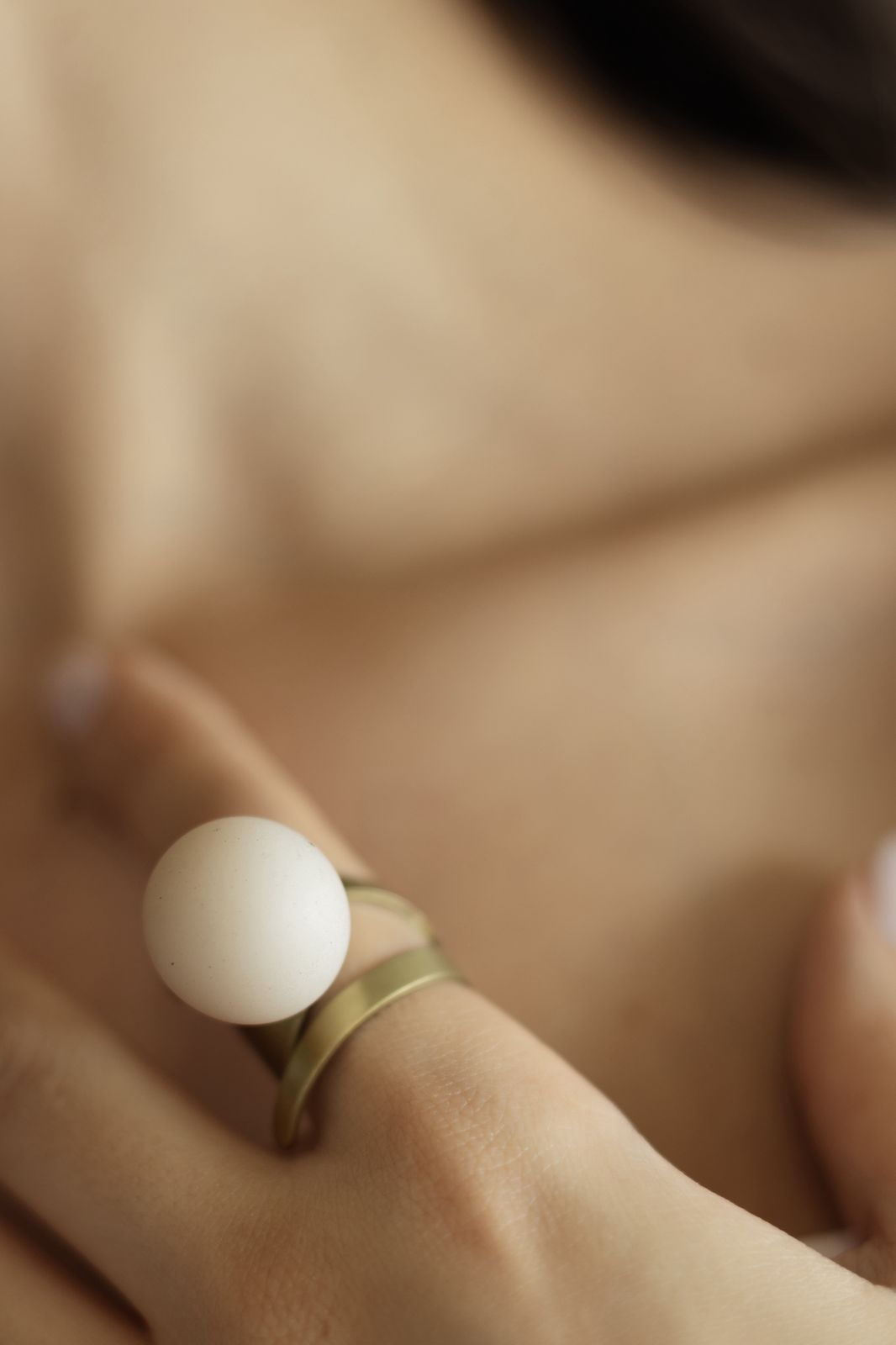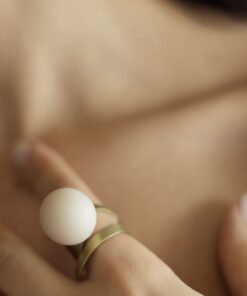 ANEL DE OURO VELHO COM BOLA EM RESINA OFF WHITE. TAMANHO AJUSTÁVEL.
