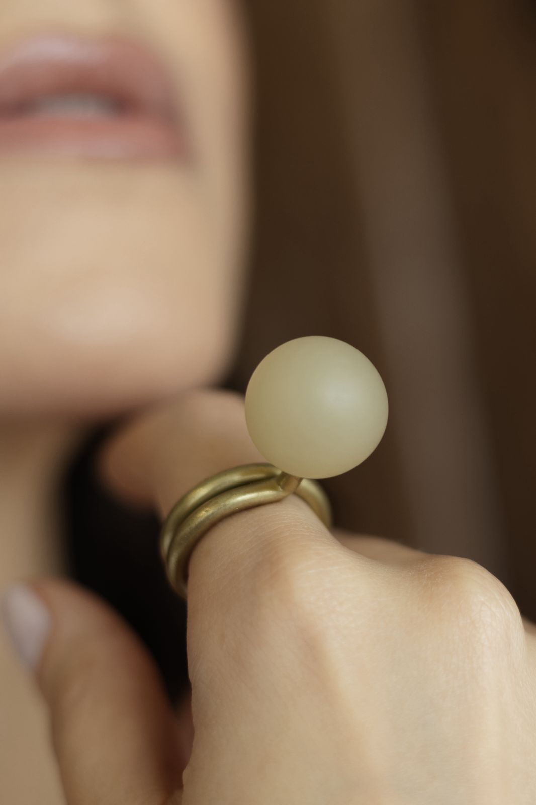 ANEL DE METAL OURO VELHO COM BOLA SUSPENSA.