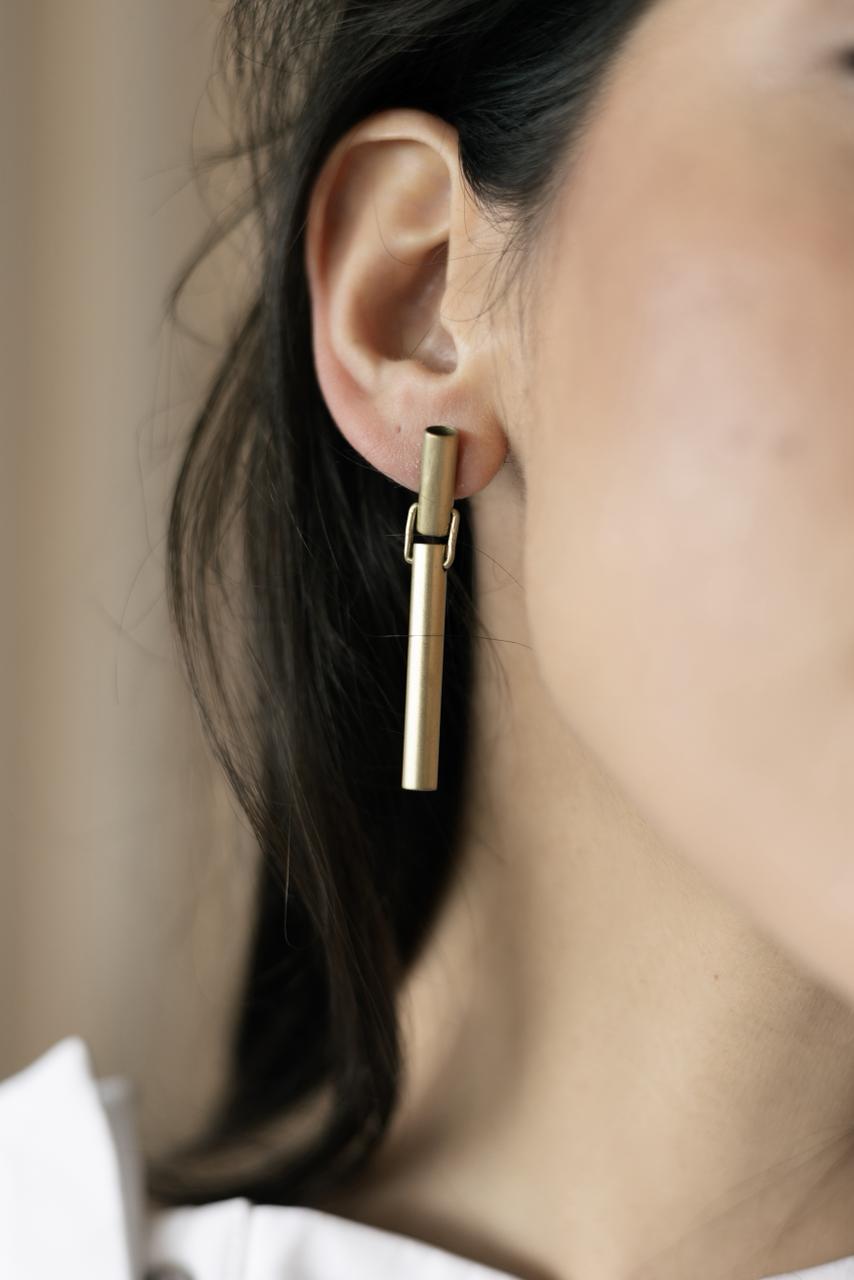 BRINCO RETO COM HASTE MALEÁVEL DE METAL EM OURO VELHO.