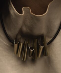 COLAR CURTO COM CORDÃO DE COURO E PEÇAS EM OURO VELHO.