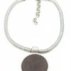 COLAR CURTO COURO, METAL PRATA ENVELHECIDA.
