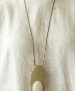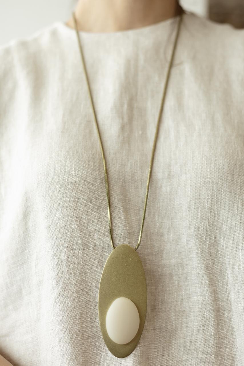 COLAR LONGO COM CORRENTE E PLACA DE METAL OURO VELHO COM DETALHE DE PEÇA DE RESINA.