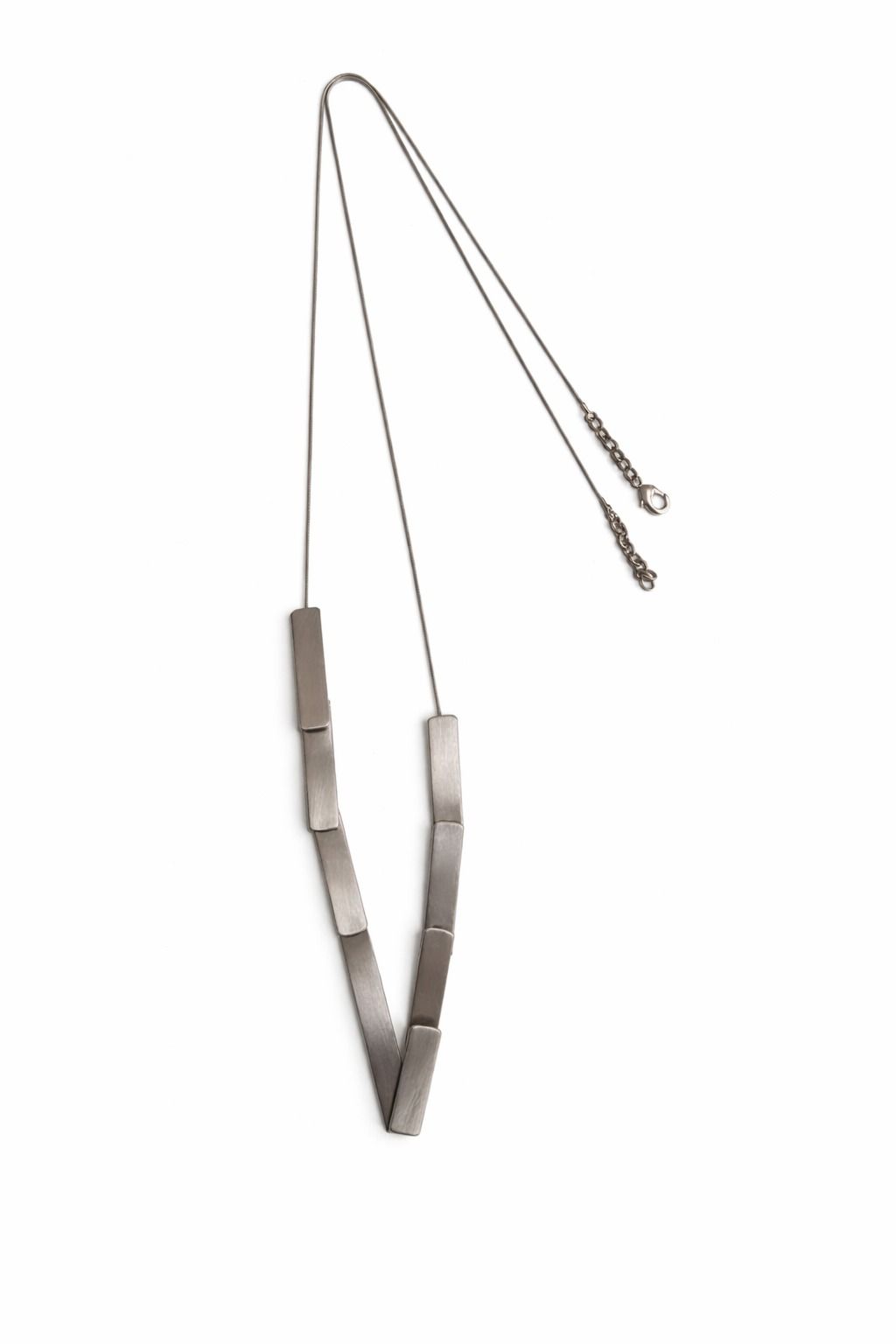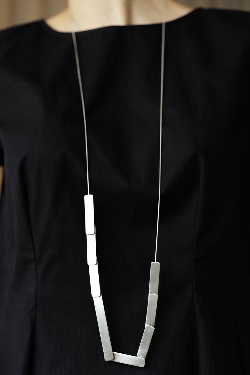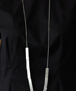 COLAR LONGO COM CORRENTE E RETÂNGULOS EM METAL PRATA ENVELHECIDA.
