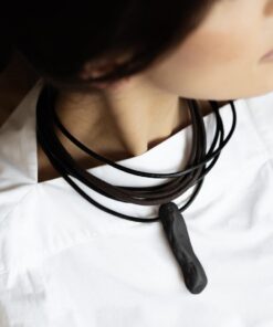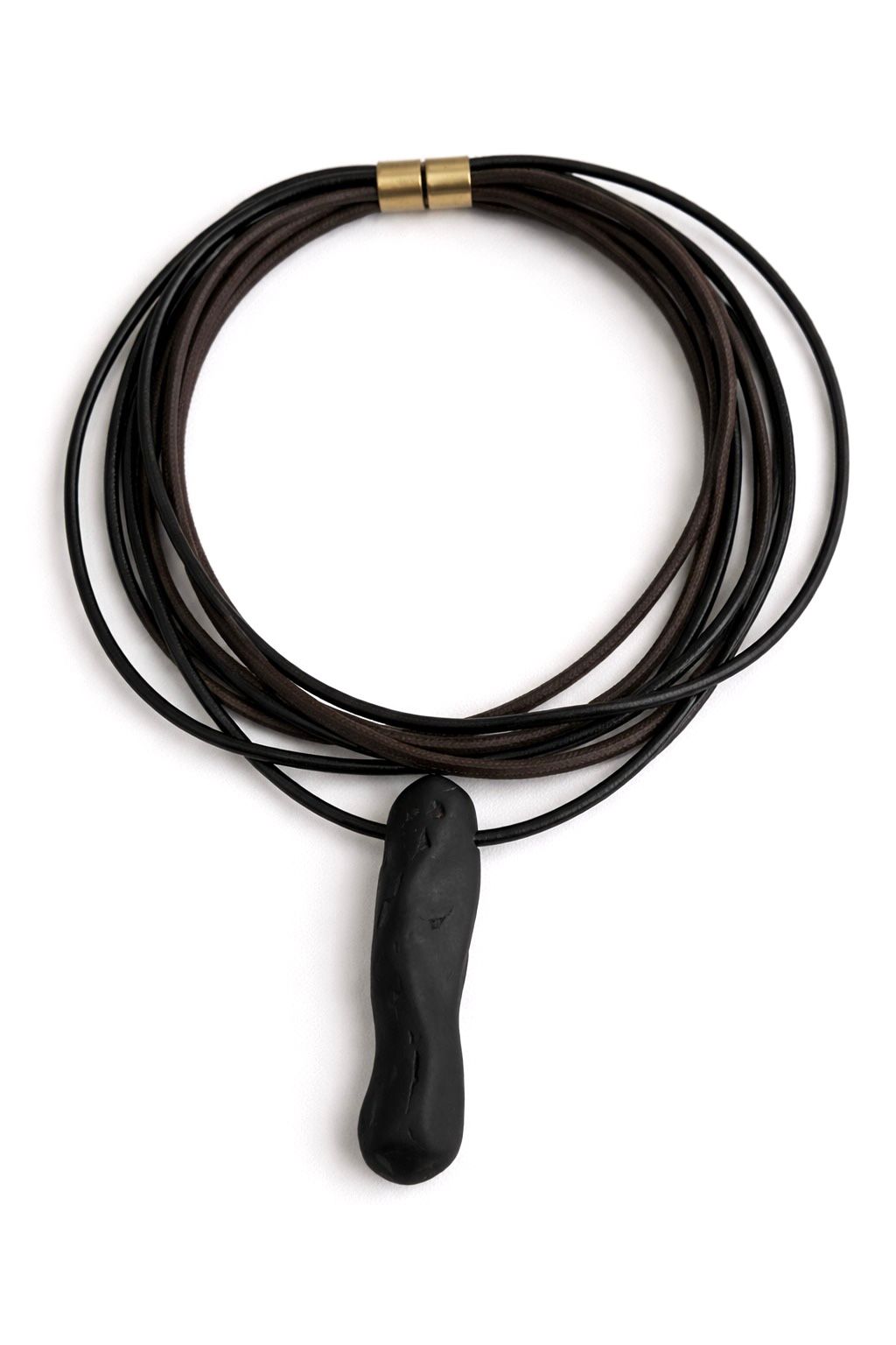 COLAR DE COURO COM PEÇA DE RESINA E FECHO EM ÍMÃ. METAL PRATA ENVELHECIDA.