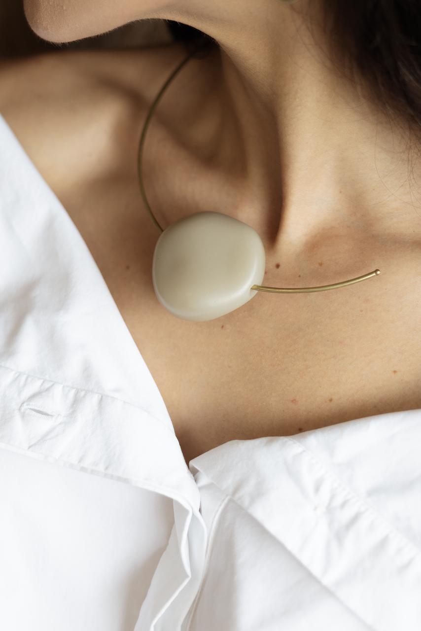 COLAR COM ARO ESTRUTURADO OURO VELHO COM PEÇA DE RESINA FIXA.